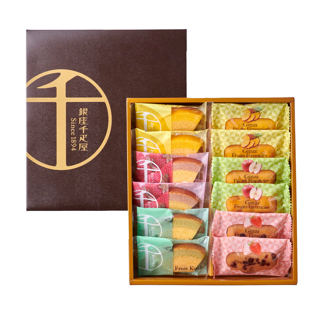 ■商品内容:銀座フルーツクーヘン (メロン&ミルク、イチゴ&ミルク、レモン&はちみつ) 3種各2個、銀座フルーツフィナンシェ (パイナップル、ストロベリー、アップル) 3種各2個