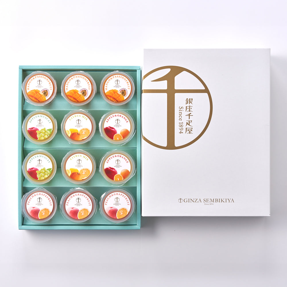 ■フルーツの美味しさをギュッと閉じ込めた、ジューシーな果肉入りのゼリーと、彩りも美しいゼリーの組み合わせです。