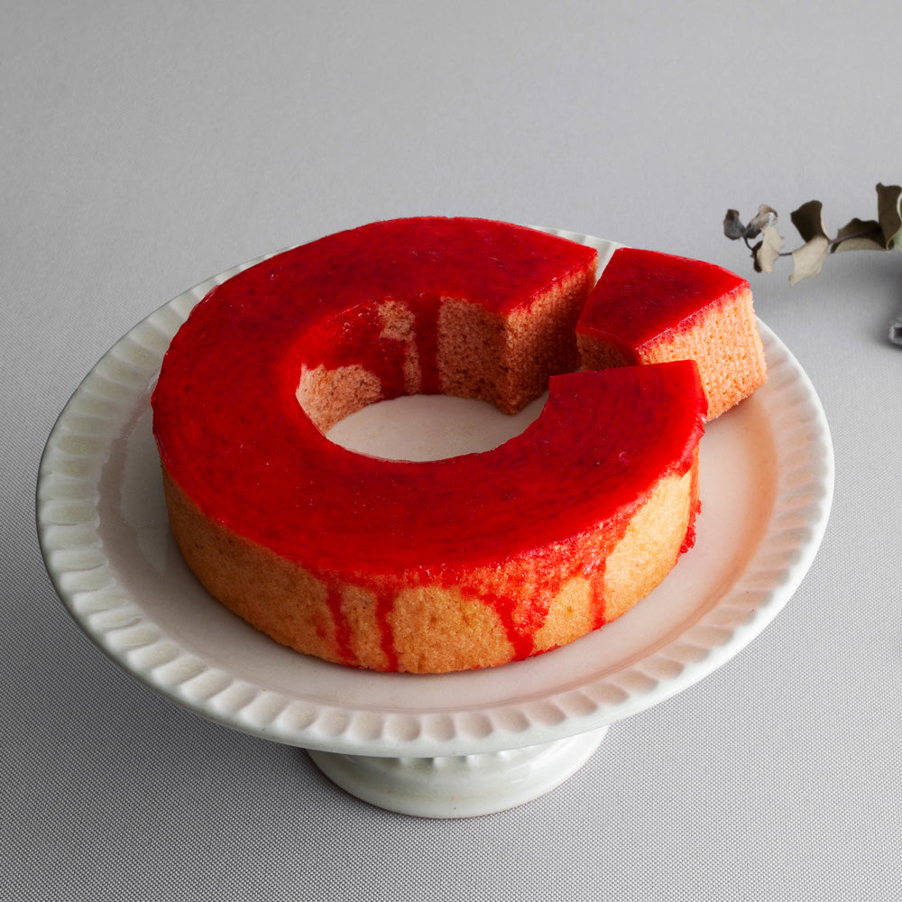 ■福岡県産あまおう苺とアーモンドプードルを生地に練り込み、職人がひとつひとつ丁寧に焼きあげました。あまおう苺のナパージュがジュエリーのような光沢感。苺の香と味わい豊かなバームクーヘンです。