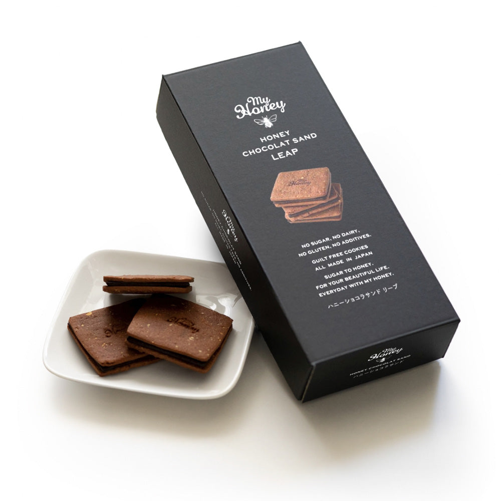 ■東京・表参道に本店を構える、はちみつ専門店MY HONEYのギフトセットです。甘さははちみつだけ。お砂糖・添加物・乳製品・卵・小麦粉は不使用。1枚ずつ手作りで仕上げた罪悪感のないショコラサンドです。生はちみつとカカオだけで作られたフィリングは濃厚なのに口溶けはなめらか。はちみつの優しい甘さとビターなカカオの風味で1枚で大満足の逸品。添加物を使わないクッキーサンドの自然な調和をお楽しみください。