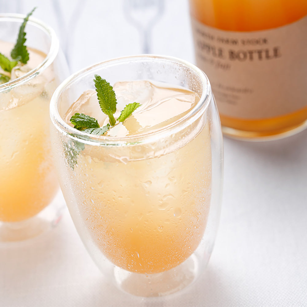 「ハックナイン」と「ふじ」をブレンドしたノースファームストックオリジナルりんごジュースは、酸味と甘味がいっぱい詰まったりんごジュースになります。