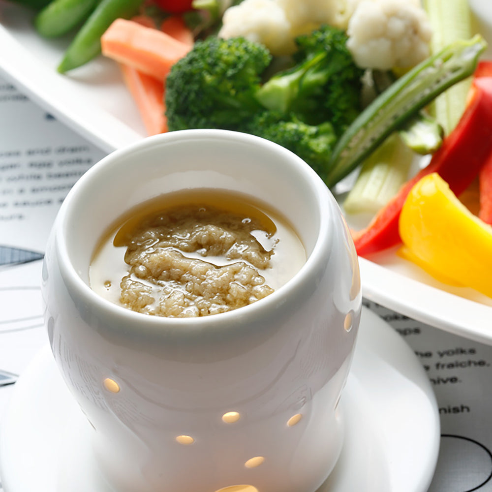 北海道産ニンニクと国産アンチョビを使ったコクと風味が自慢のバーニャカウダソースです。