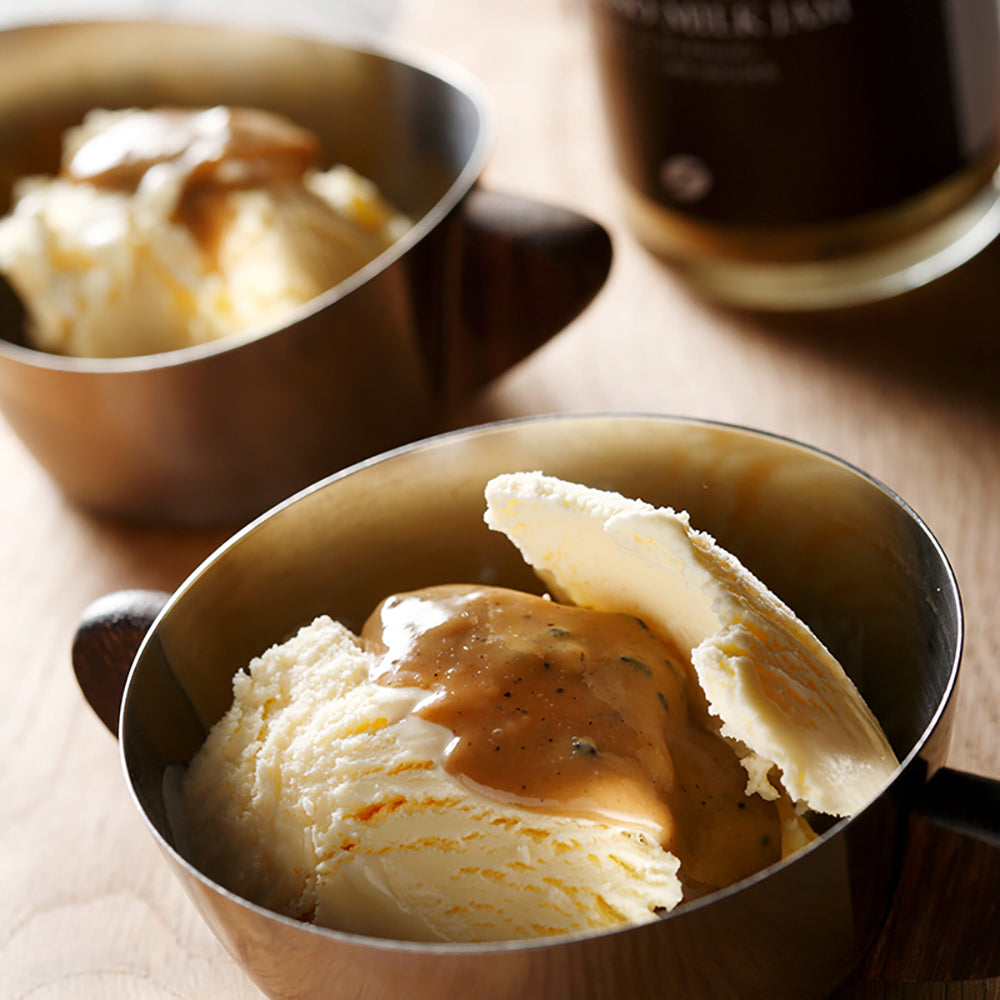 札幌の老舗インフィニ珈琲社の焙煎豆を使用したエスプレッソミルクジャムは、ミルクジャムの甘さとコーヒーの苦味が混ざり合った大人のミルクジャムです。