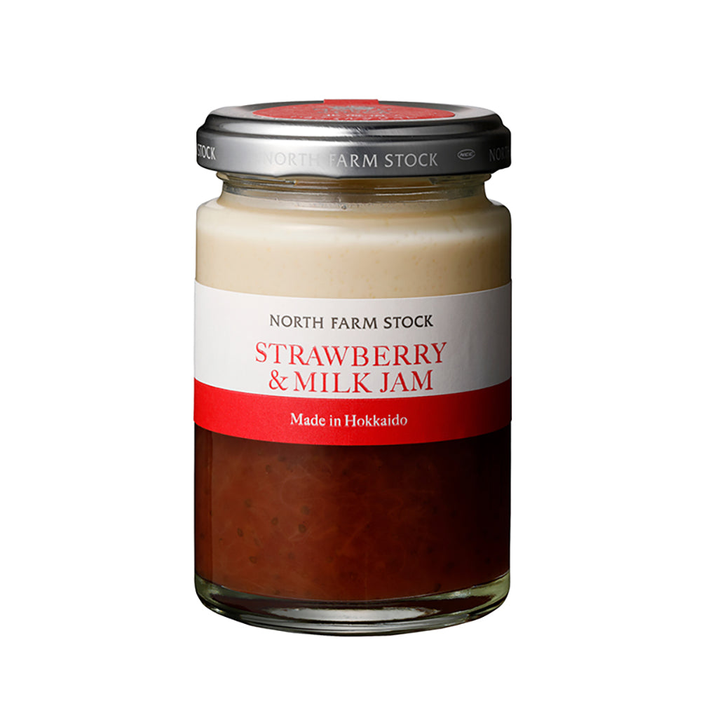 北海道産のいちごをたっぷり使用したプレザーブタイプのジャムと北海道町村農場の生乳で作ったミルクジャムを使用。
