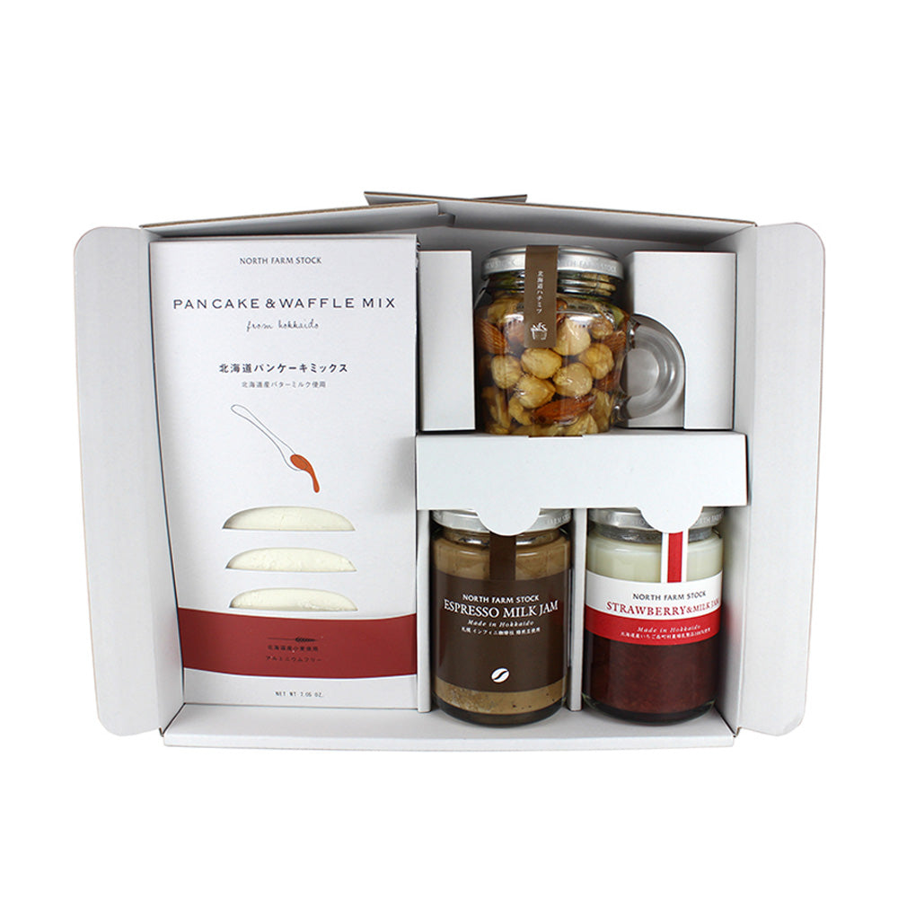 「NORTH FARM STOCK」パンケーキミックス&北海道ハニーナッツ&北海道ミルクジャム2種 詰め合わせ[4種]