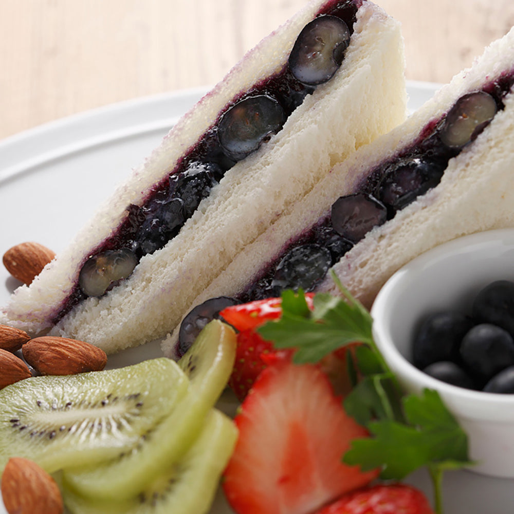 程よい酸味が特徴の北海道産ブルーベリージャムと北海道町村農場の生乳で作ったミルクジャムを使用。