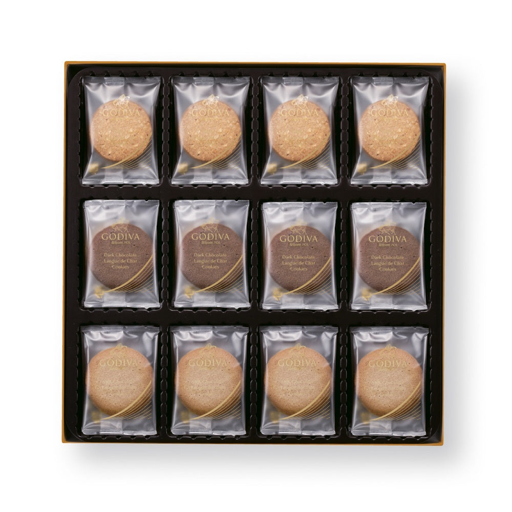 ■ゴディバは、90年以上にわたり世界中で愛されている、高級チョコレートのリーディングブランドです。チョコレートをはじめ、クッキーやアイスクリームなど、質の高いチョコレート製品を提供しています。チョコレートを練りこんだサクッとした口あたりのラングドシャ生地でチョコレートをサンドした2種類のクッキーとサブレのアソートメント。