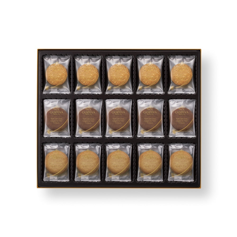 ■ゴディバは、90年以上にわたり世界中で愛されている、高級チョコレートのリーディングブランドです。チョコレートを練りこんだサクッとした口あたりのラングドシャ生地でチョコレートをサンドした2種類のクッキーとサブレのアソートメント。