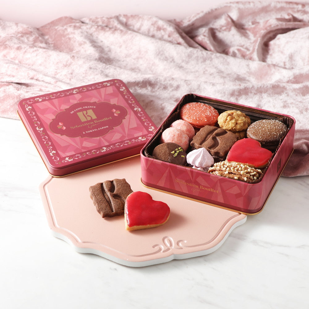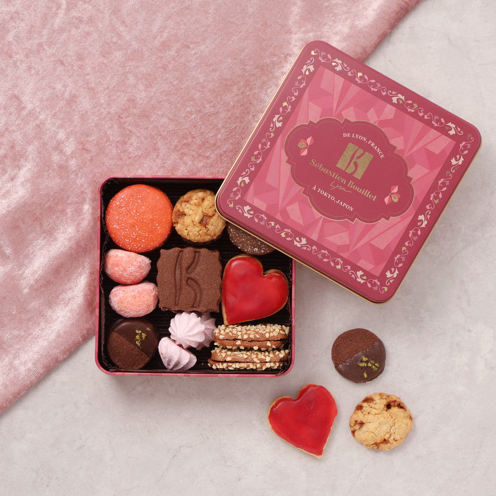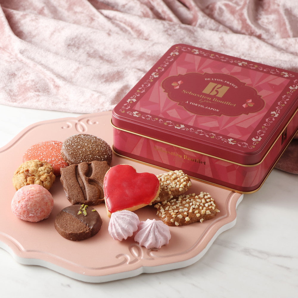 ■赤を基調にショコラフレーバーのサブレやラスクを入れたクッキー缶
