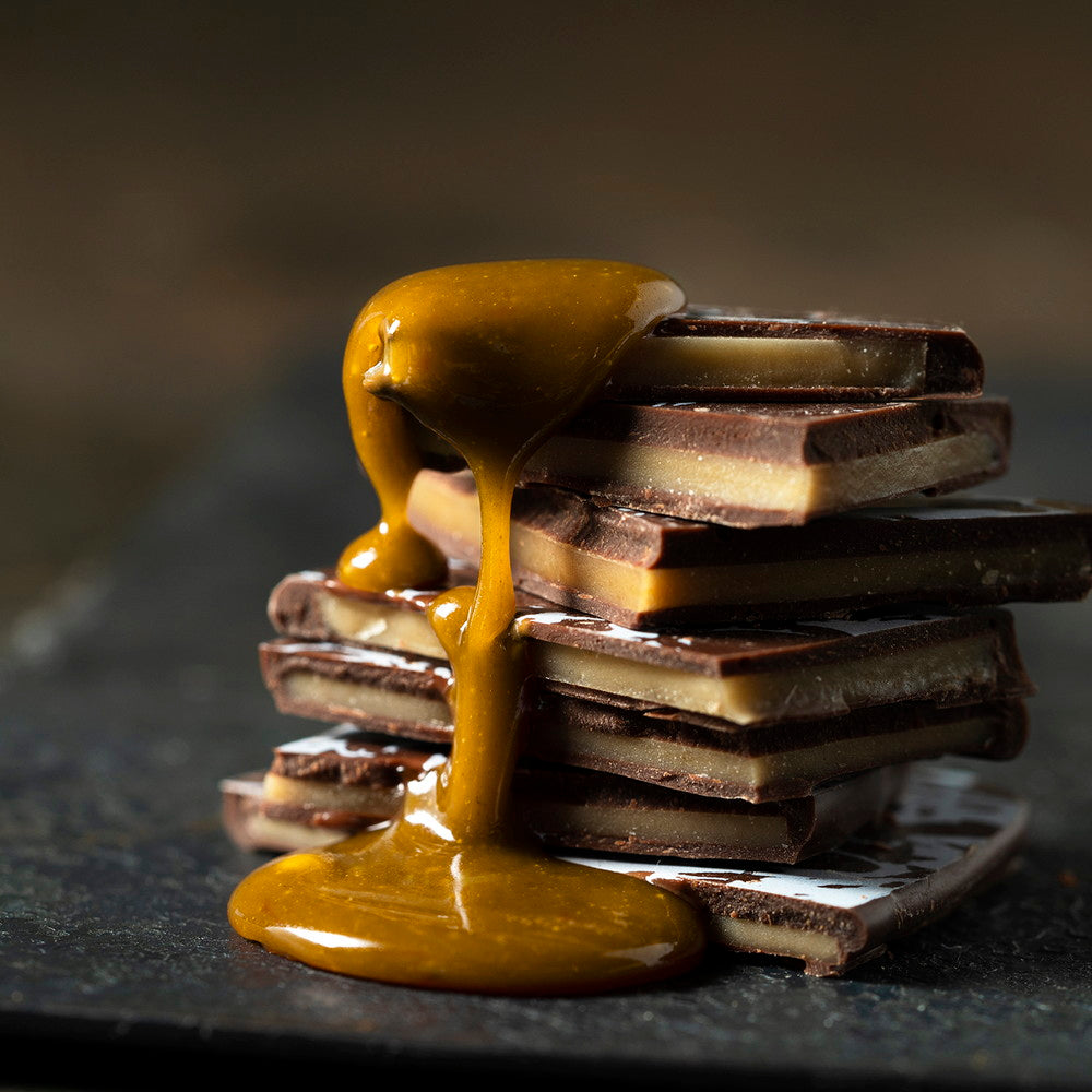 チョコレートとキャラメルが織りなす、甘さとほろ苦さの絶妙なバランスと、こだわり抜いた新しい食感は、是非一度味わっていただきたい一品です。