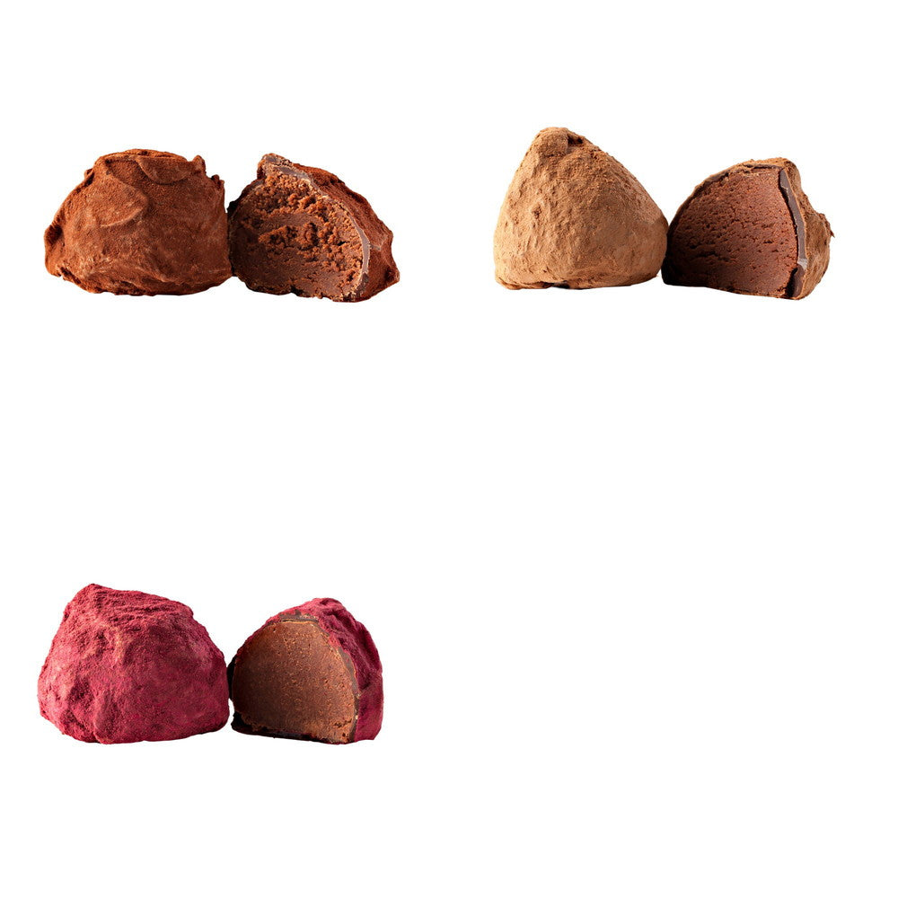 キャラメル風味、カシス風味、プレーンの3種のトリュフの詰合せ。