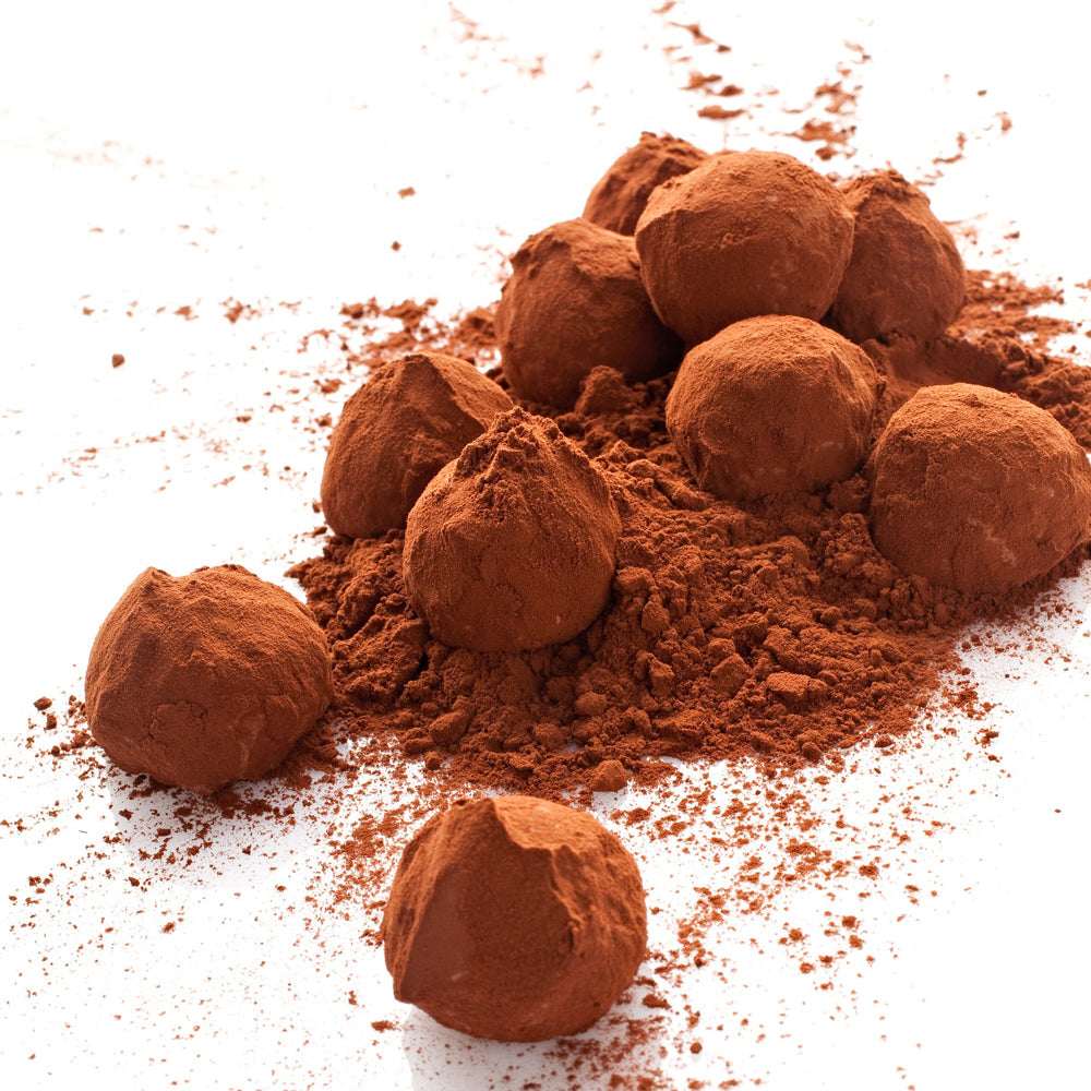 【トリュフ プレーン】ダークチョコレートでコーティングしカカオパウダーをまぶした、軽やかなテクスチャー、とろけるようなガナッシュムース
