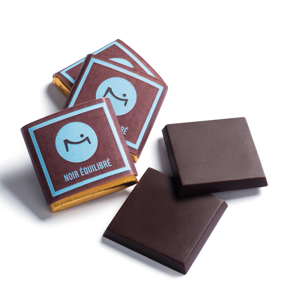 カジュアルギフトに便利な簡易ボックスに、フィナンシェ2個と、滑らかな口溶けの小さな四角い板チョコレートを2枚収めました。