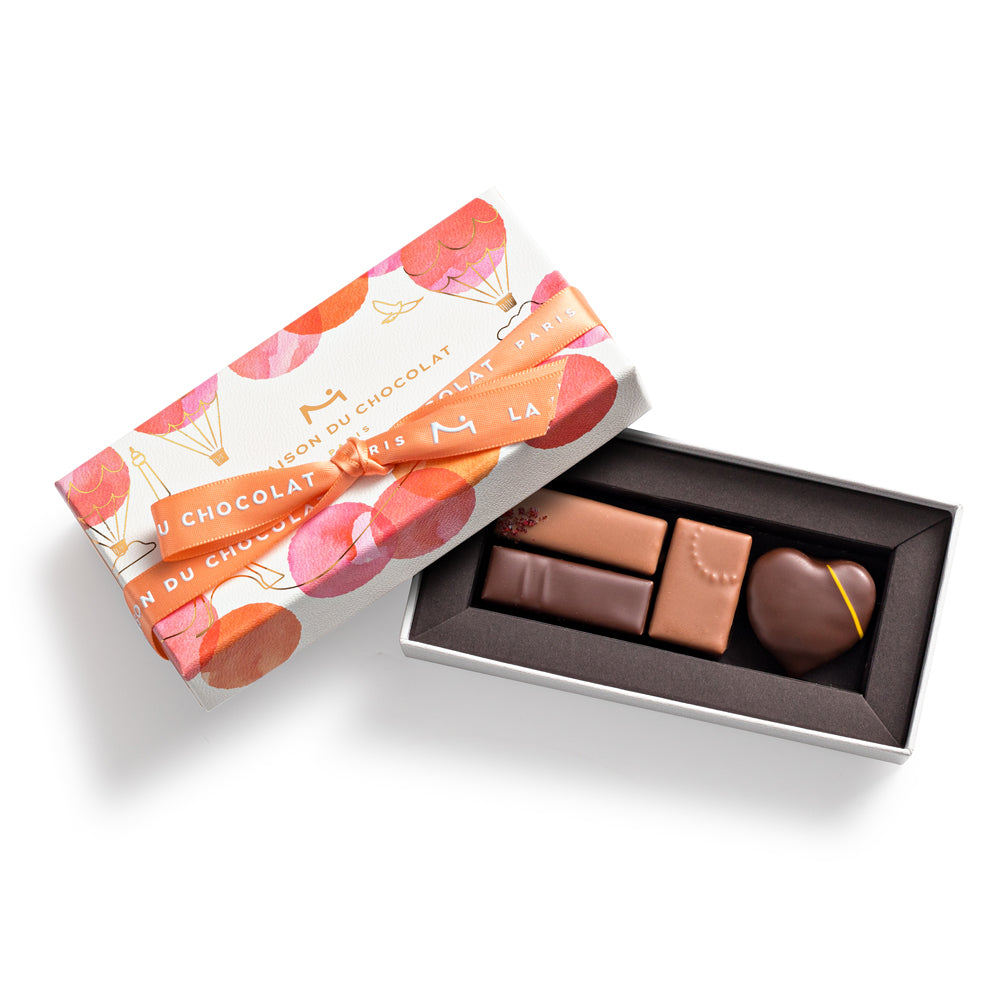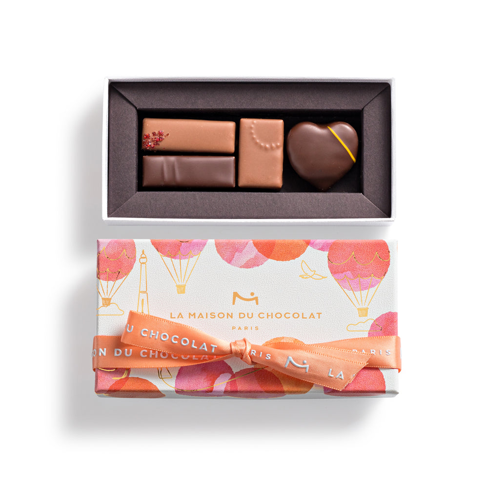 ■ギフトボックスに、4種のコレクション限定レシピを収めた詰合せ。 ニコラ・クロワゾーに導かれ、光の都パリの上空に係留された気球に乗って眼下に広がる街並みを見ると、パリは街そのものが祝祭であるということに気づかされます。