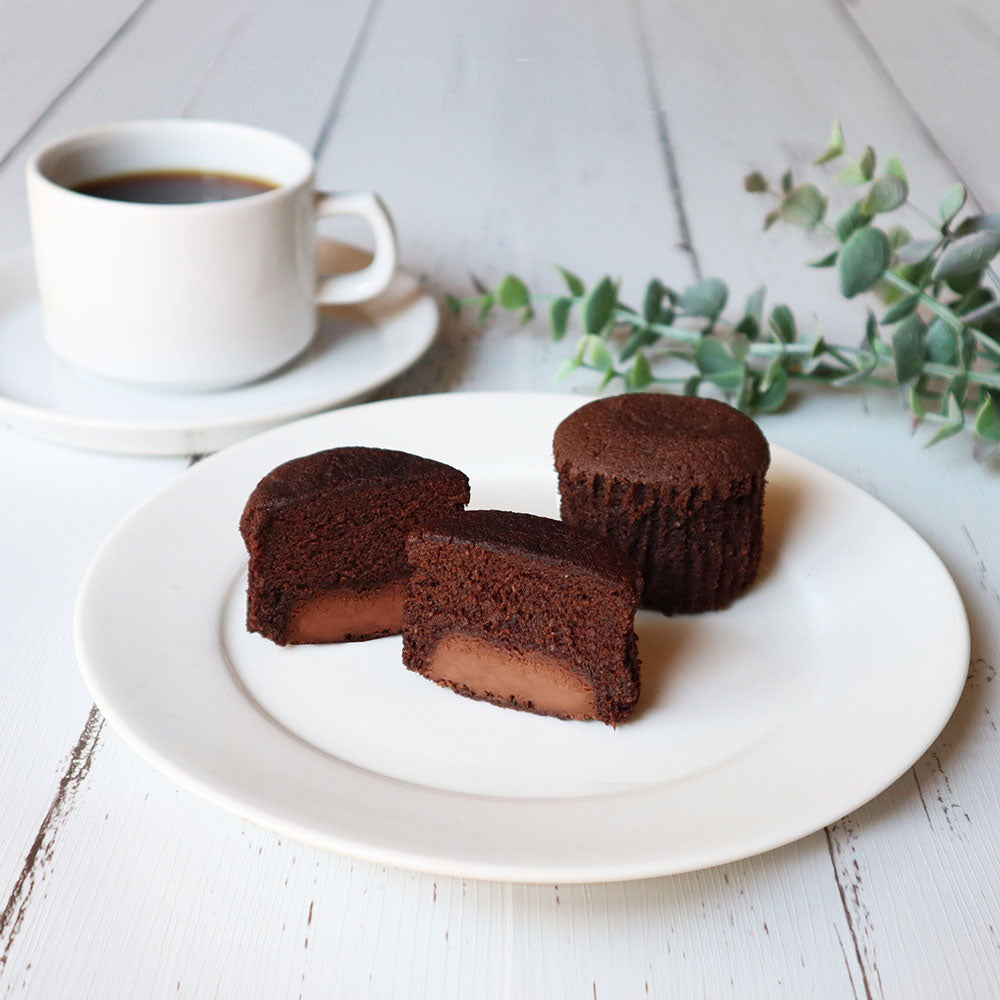 ■口に含むと広がる濃厚でリッチな味わいが、満足感のあるチョコレートの焼菓子です。しっとりしたチョコレートのスポンジの中には、濃厚なトリュフショコラが包み込まれています。