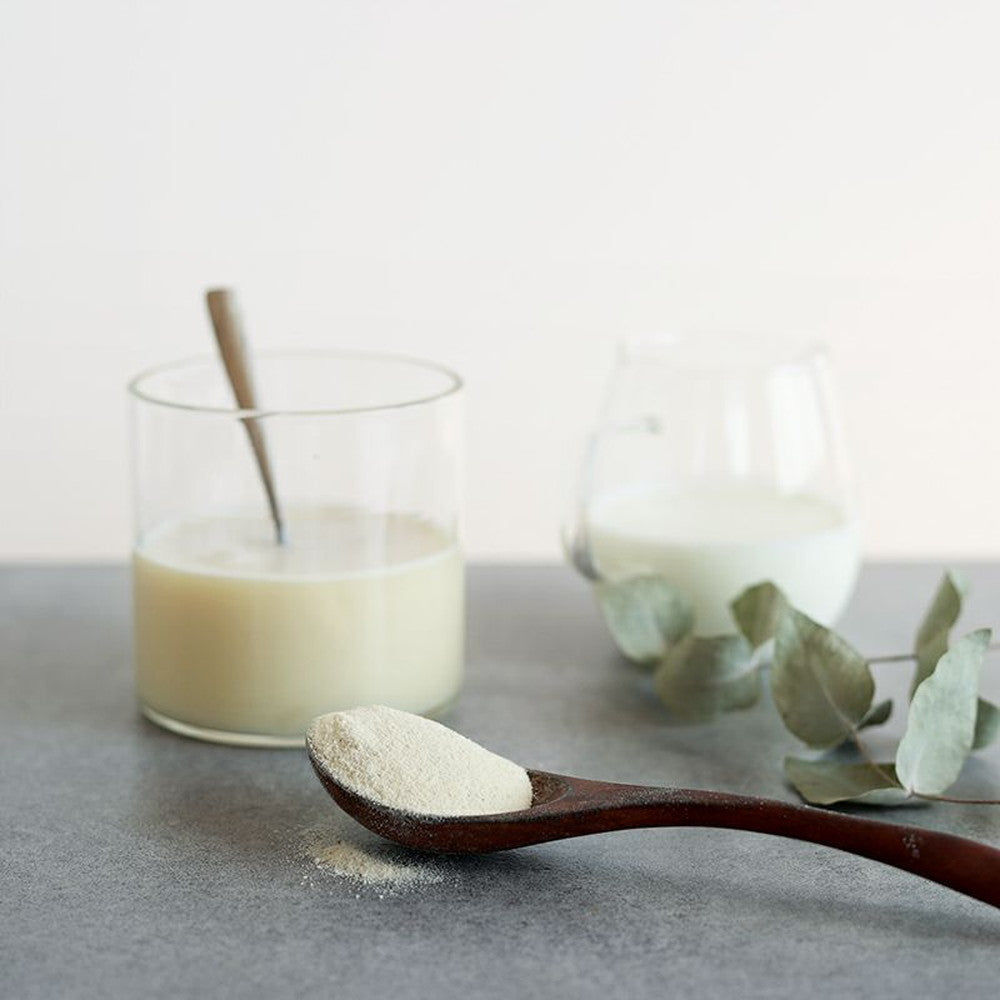 ※タンパク質の性質上、60℃以上の水またはミルクで溶かすと固まってしまう場合がございますのでご注意ください。