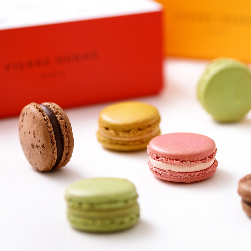 ピエール・エルメ・パリの代表アイテム、マカロン。人気の高い定番フレーバー5種を詰め合わせた10個入りギフトボックスです。どなたにも喜ばれる定番の詰め合わせ内容は、贈り物や手土産などのギフトとしても最適です。