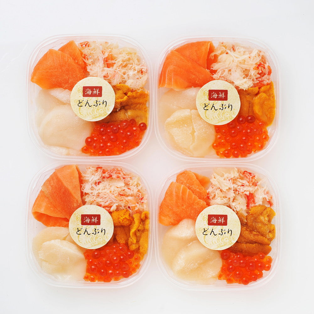 ■海鮮素材が入ったどんぶりの具。ご飯の上にのせるだけで簡単に海鮮どんぶりが楽しめます。