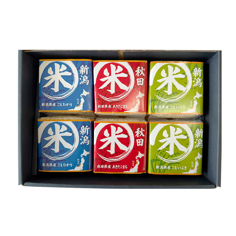 セット内容:新潟県産コシヒカリ1合(約150g)x2/新潟県産こしいぶき1合(約150g)x2/秋田県産あきたこまち1合(約150g)x2