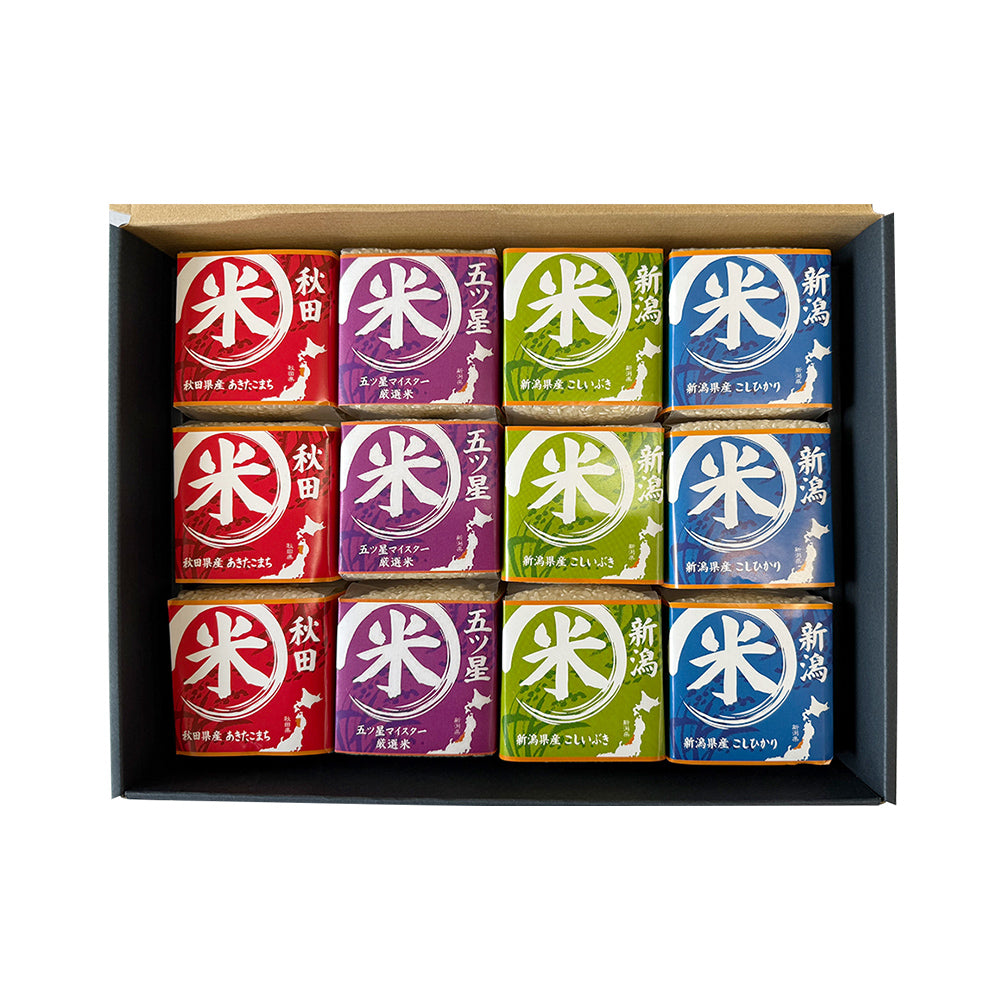 セット内容:新潟県産コシヒカリ1合(約150g)x3/新潟県産こしいぶき1合(約150g)x3/秋田県産あきたこまち1合(約150g)x3/ブレンド米1合(約150g)x3
