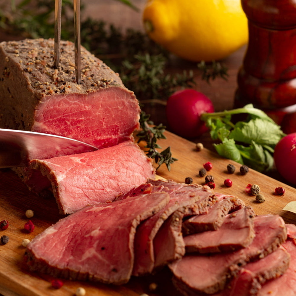 ■商品内容:ラ・ロシェル坂井宏行監修 こだわりのローストビーフと特製ガーリックペッパーソース ローストビーフ350g、特製ガーリックペッパーソース120ml