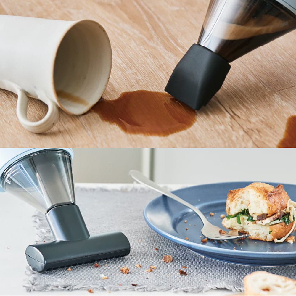 洗剤泡も、食べこぼしも、さまざまな汚れ・ゴミをしっかり吸引できる乾湿両用。コードレスでコンパクトだから、小さなスペースでもラクラク使えます。