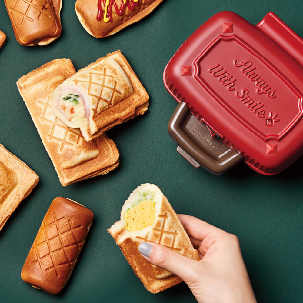 ■食パン1枚とお好きな具材で、食べきりサイズのおいしいホットサンドが手軽に作れる[プレスサンドメーカー ミニ]。