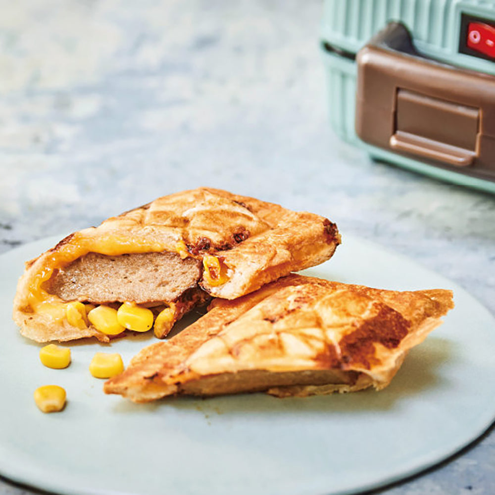 ■食パン1枚とお好きな具材で、食べきりサイズのおいしいホットサンドが手軽に作れる[プレスサンドメーカー ミニ]。