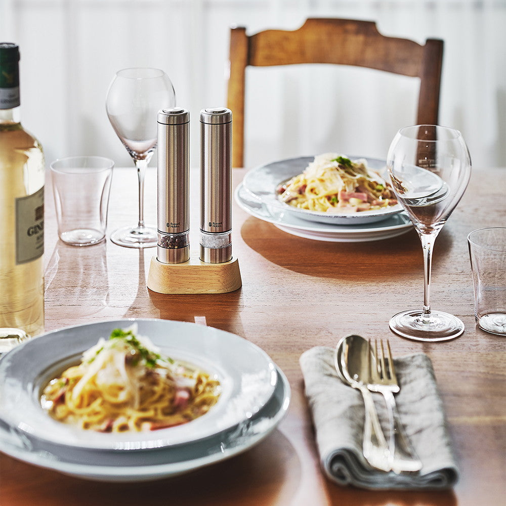 テーブルコーディネートや料理の味わいにプラスもできる、ハンディサイズの電動ミル。