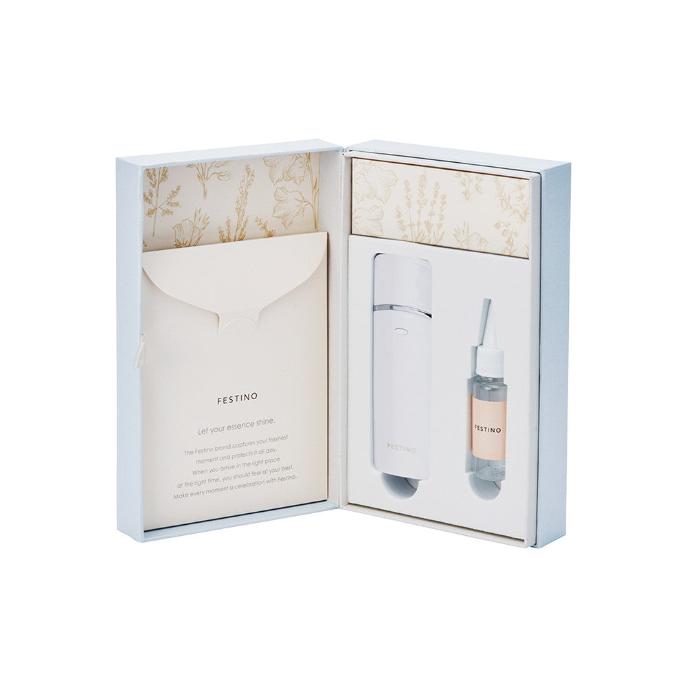 メッセージカードが入れられるスペシャルギフトパッケージ。便利な水差しボトル、収納袋付き