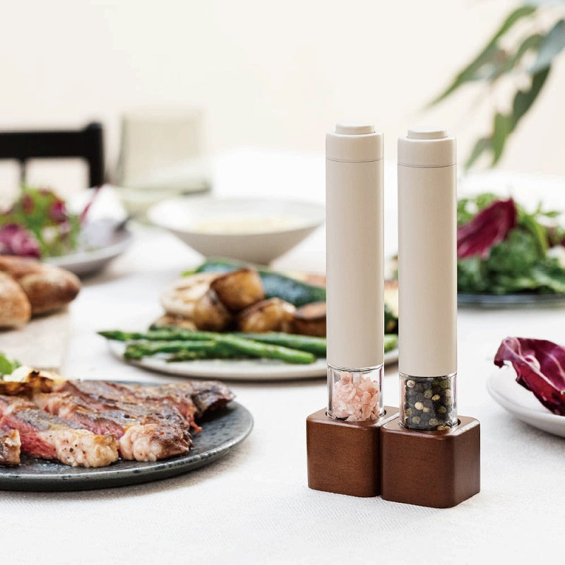 ■スパイスやソルトの挽きたての香りや風味が楽しめる電動タイプのミル。