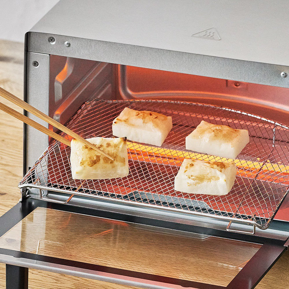 細かいメッシュ状のワイヤーラックは、お餅や小さな食材も落ちにくく、焼きムラも軽減されます。