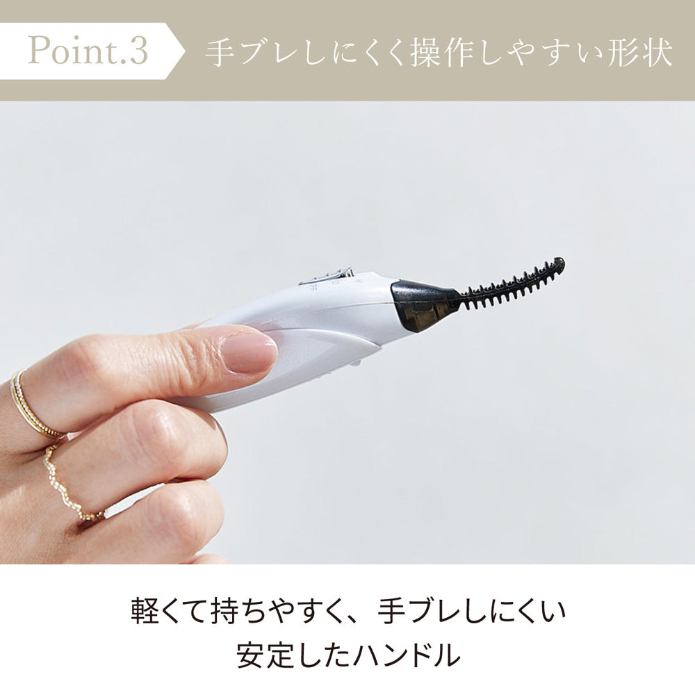 アーチ型コームが無理なく自然にまつ毛にフィット。キレイなカールを演出します。