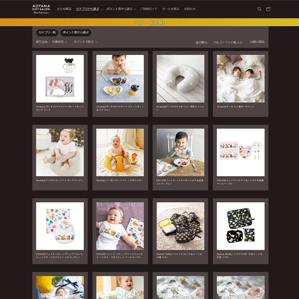 AOYAMA GIFT SALONの「The Premium 自由に選べるポイント型ご出産祝いギフトカード」で、心に残る贈り物を。